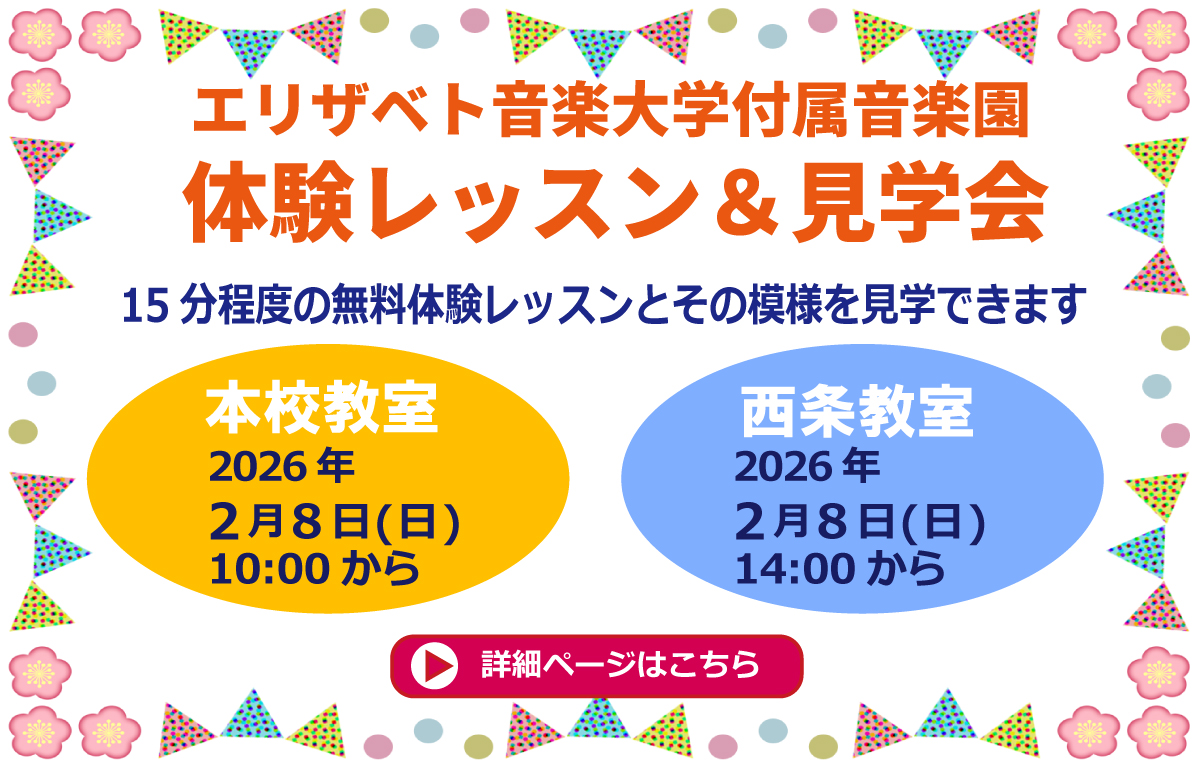 音楽園詳細ページ(エリザベト音楽大学サイト内)はこちら レッスン料等詳細は募集要項をご覧ください