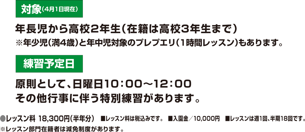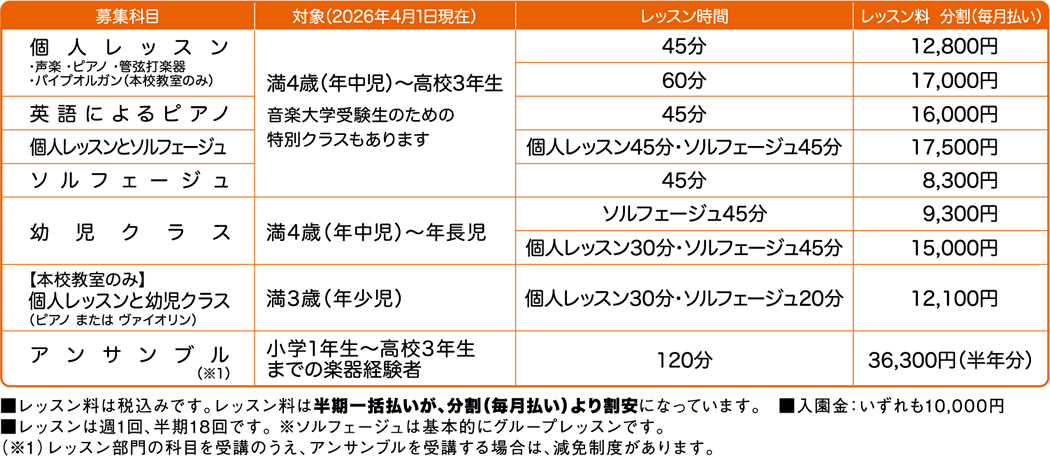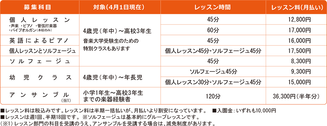 音楽園詳細ページ(エリザベト音楽大学サイト内)はこちら レッスン料等詳細は募集要項をご覧ください
